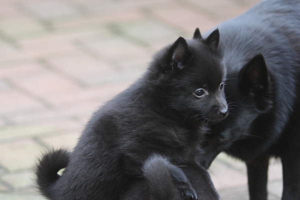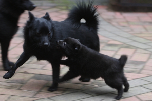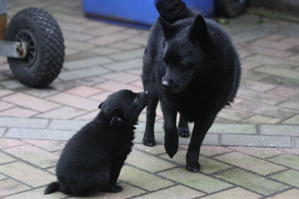 Tanta Gratia ist unermütlich mit den Welpen beschäftigt